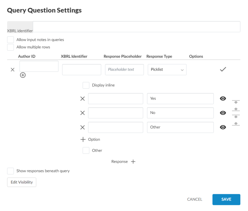 Note: If you want to add visibility settings for a query in the firm template, you must have the Settings Admin role or similar to access the firm template. See Manage the firm template for more information.